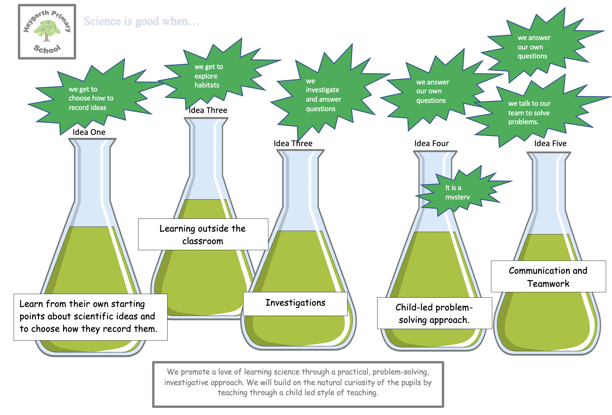 At Heygarth Primary School, we strive to promote the love of learning science and for children to understand and be curious about the science within their everyday lives. Science provides the foundations for understanding the world through the specific disciplines of biology, chemistry and physics. We promote the importance of a problem solving, investigative approach through regular 'hands on' experiences wherever possible. It is our intention that by the end of each Key Stage, each child will have an understanding of a variety of scientific concepts and be able to confidently discuss and transfer knowledge across subjects and in their individual lives. We aim for all children to gain independence and work scientifically during lessons as well as working collaboratively to investigate different concepts and ideas.